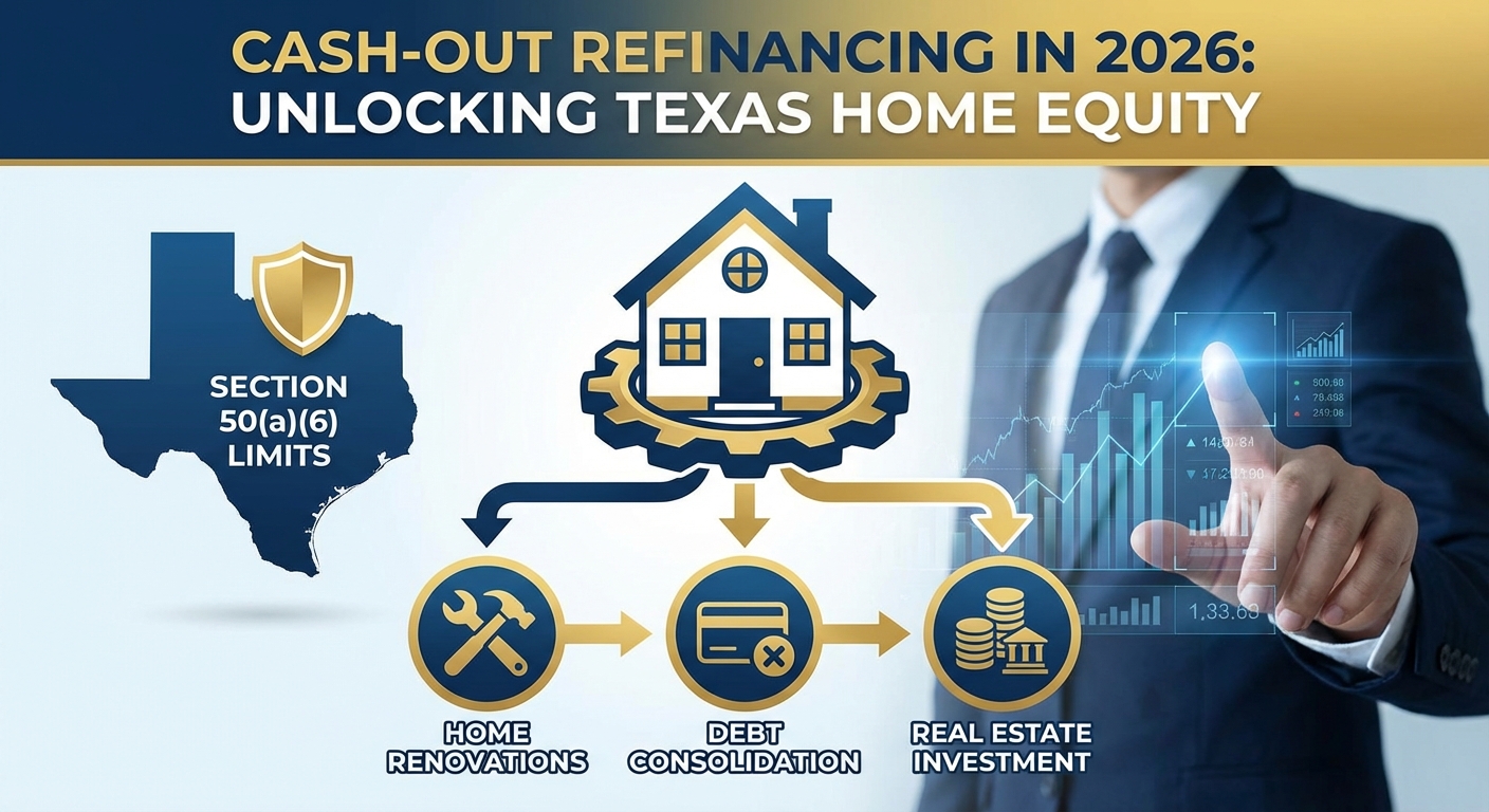 At Your Texas Home Loan Guy, we specialize in helping Texans navigate the unique mortgage landscape of the Lone Star State. Unlike a standard rate-and-term refinance, a cash-out refinance replaces your existing mortgage with a new, larger loan, giving you the difference in cash. This strategy is particularly effective in 2026 for homeowners looking to fund major renovations, consolidate high-interest debt, or expand their real estate portfolio.